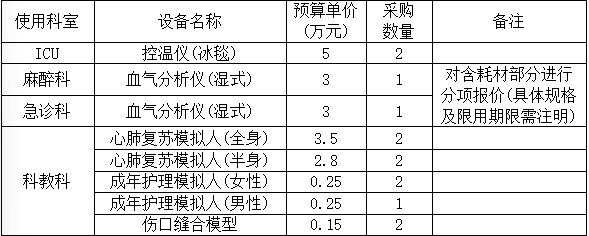 响水县人民医院控温仪、血气分析仪等采购项目市场调研