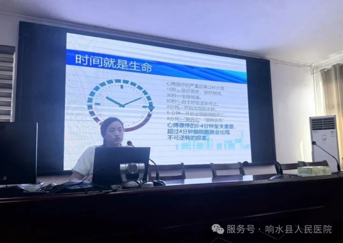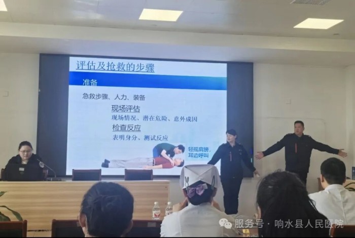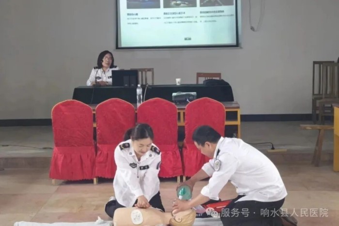 本次培训由响水县人民医院车辆调度科科长吴宁江、急诊科副护士长孟玉婷带队,在全县范围内设置了14个集中培训点,以便各医疗机构工作人员就近参与。培训内容丰富多样,涵盖了心肺复苏、AED使用、海姆立克急救法、创伤处理等相关知识和急救技能,力求为参训人员打造一场全面、实用的急救知识盛宴。