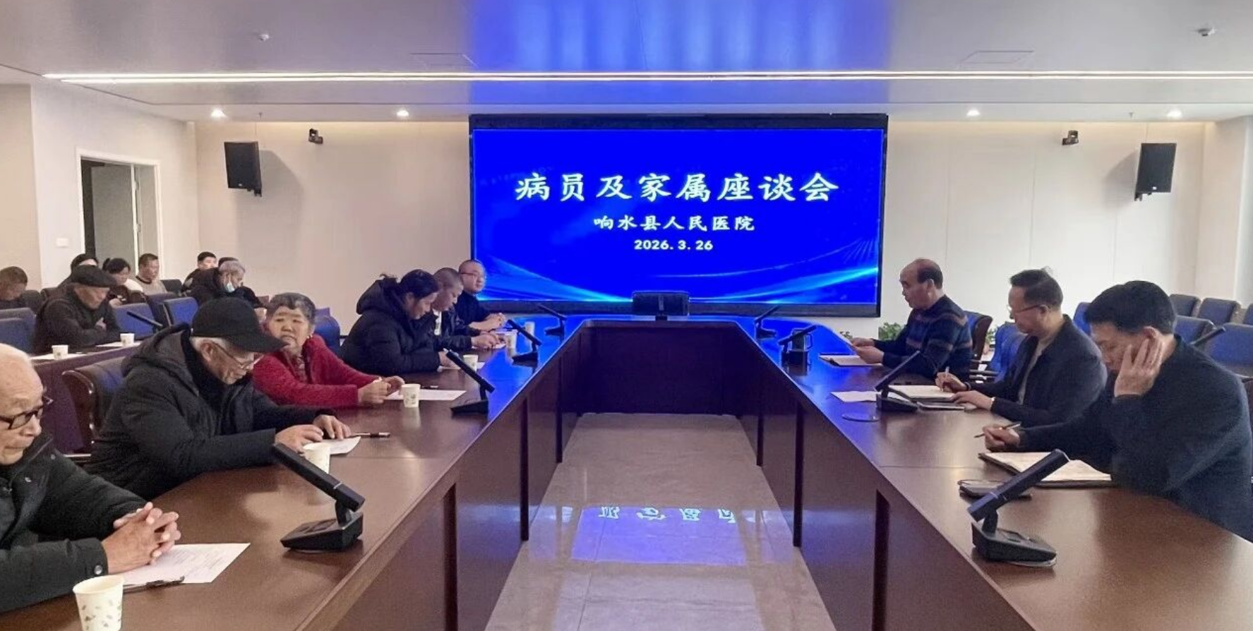 3月26日,响水县人民医院病员家属座谈会温馨开启。来自全院19个病区的38名病员、家属,以及医务科、护理部、医保办、总务科、信息科、药剂科等职能部门负责人齐聚一堂,共同为医院的发展和患者的就医体验出谋划策。会议由纪检监察室主任钱亚刚主持,副院长潘永富作重要讲话。